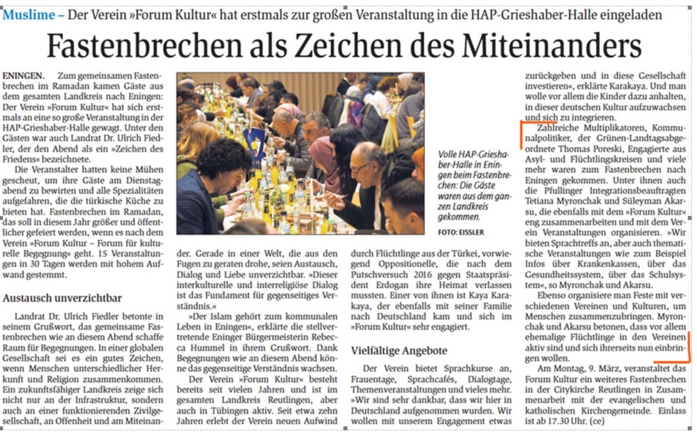 Großes Iftar-Treffen des Forum für Kulturelle Begegnung e.V. in Eningen