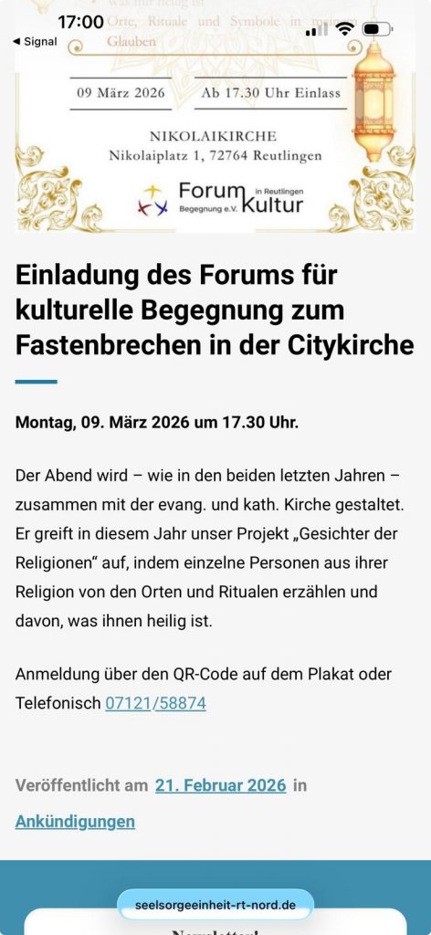 Das Forum für Kulturelle Begegnung e.V. organisierte gemeinsam mit der katholischen und der evangelischen Kirche ein interreligiöses Iftar-Treffen, das in diesem Jahr bereits zum dritten Mal stattfand. Gastgeber der Veranstaltung war erneut die City-/Nikolai-Kirche.
